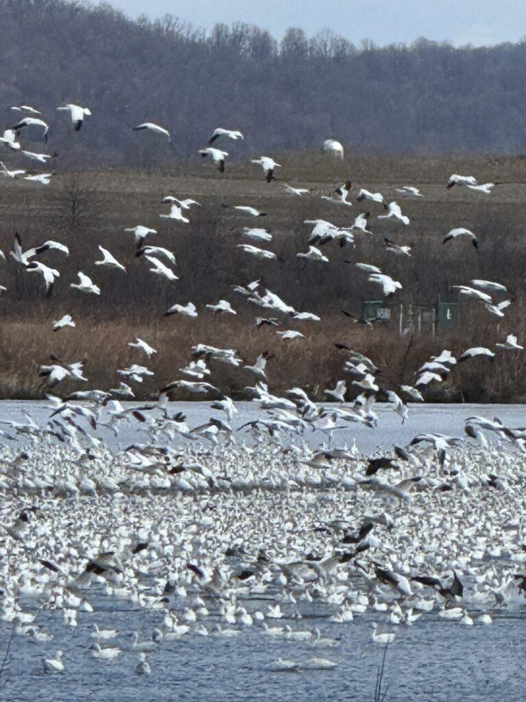 A moment of flapping wings, white feathers, loud calls, all on a background of ice. Witnessing the migration of thousands of Snow Geese in Pennsylvania!